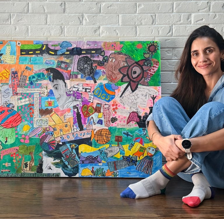 Send your child’s drawings and paintings to my Arlington, VA studio, and I transform them into a one-of-a-kind collage. Each piece is thoughtfully arranged, enhanced with hand-painted accents, and finished with a radiant high-gloss varnish. Mounted on a cradled wood panel with professional hardware, your collage arrives ready to display—a timeless keepsake celebrating your child’s creativity.